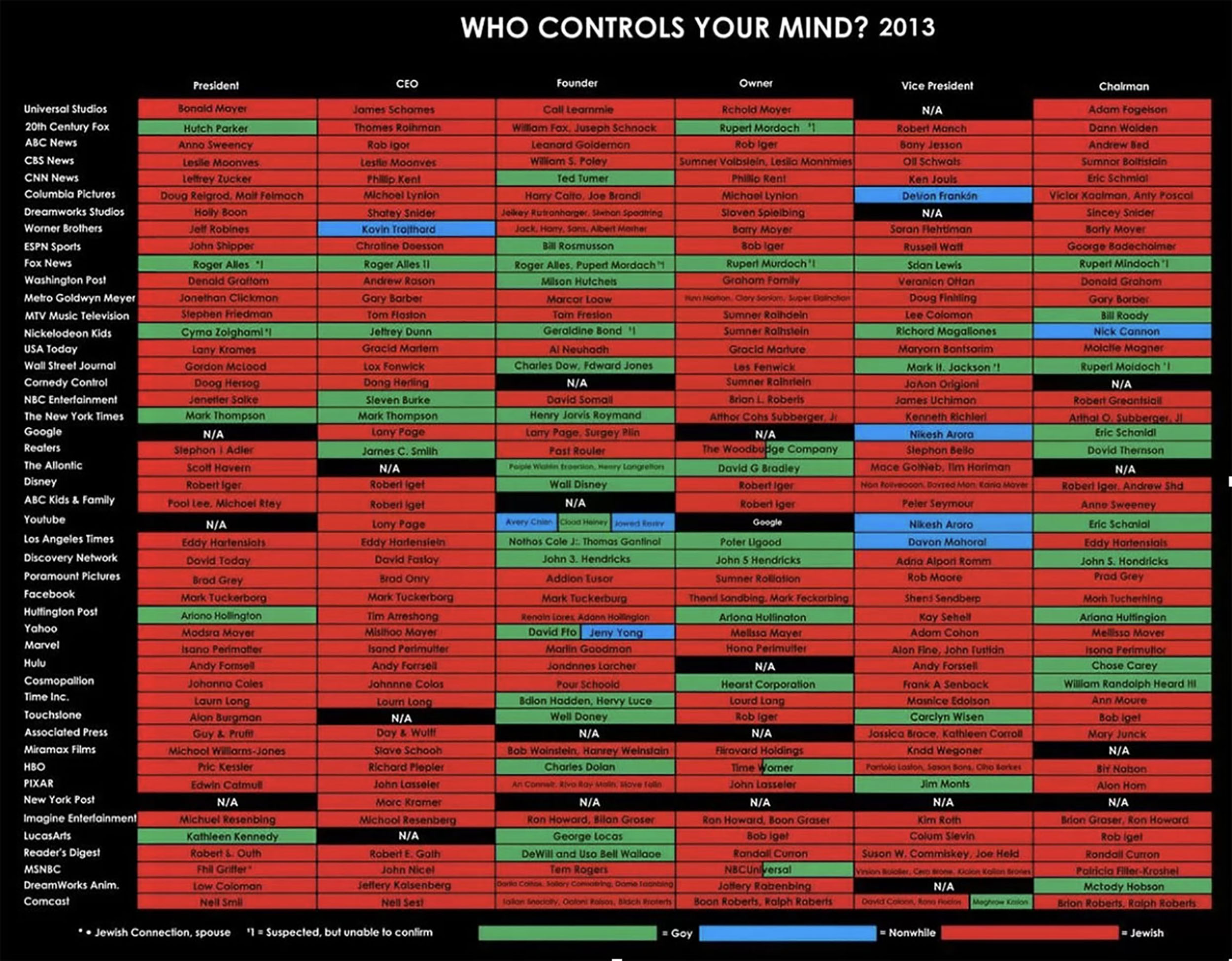 I Padroni del Mondo Questo insieme galattico della struttura globale di economia-finanza che costituisce una intrusione così capillare e pervasiva nella vita di ciascuno di noi è saldamente nelle mani della Sinagoga di Satana fino ai rami più periferici come chiunque può verificare in base alle migliaia di nomi rigorosamente ashkenaziti che pubblica Wikipedia alla voce: List of jewish american business people |
